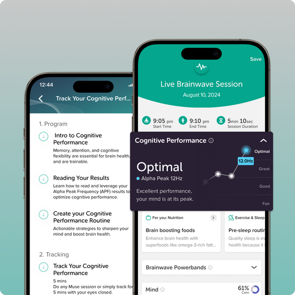 With every session, Muse tracks your cognitive performance with Alpha Peak, an EEG-powered metric of brain health.