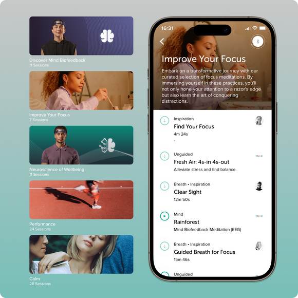 - Live Visualization: See your brainwaves in real-time during your self-guided experience